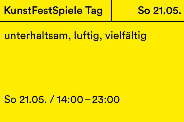 KunstFestSpiele Tag So 21.05. / 14:00 bis 23:00 |