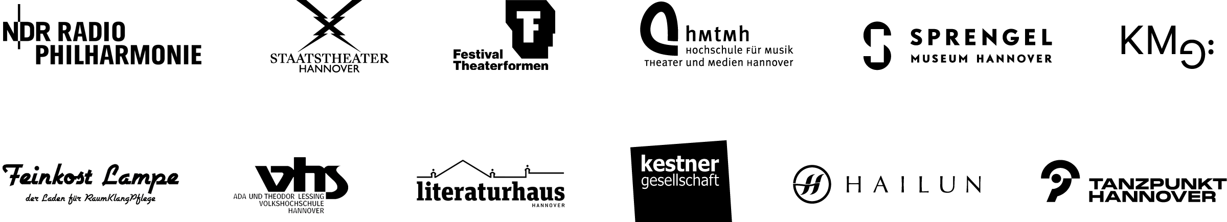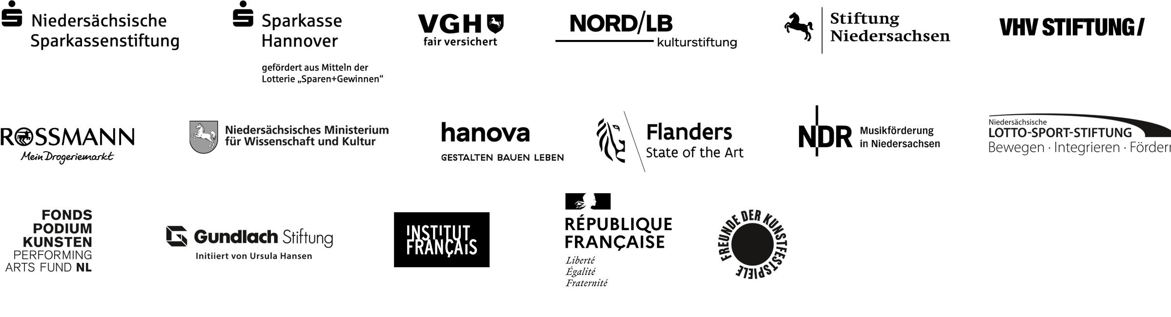 Die KunstFestSpiele Herrenhausen wären ohne die Partner*innen an ihrer Seite nicht realisierbar. Wir danken insbesondere unseren Hauptförder*innen für ihre langjährige Unterstützung: der Niedersächsischen Sparkassenstiftung, der Sparkasse Hannover, der VGH, der Nord/LB Kulturstiftung, der Stiftung Niedersachsen und der VHV Stiftung.